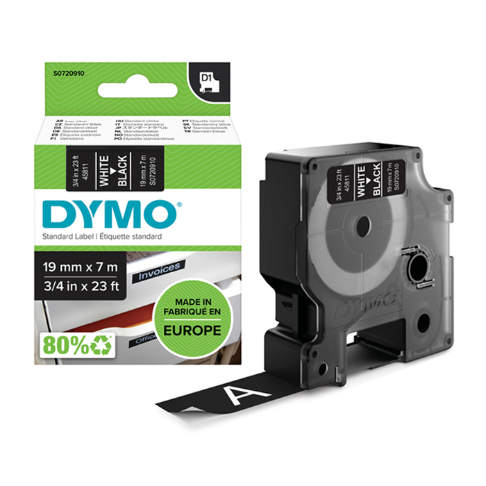 DYMO เทปไดโม D1 อักษรขาว พื้นหลังดํา 19ม.X7ม